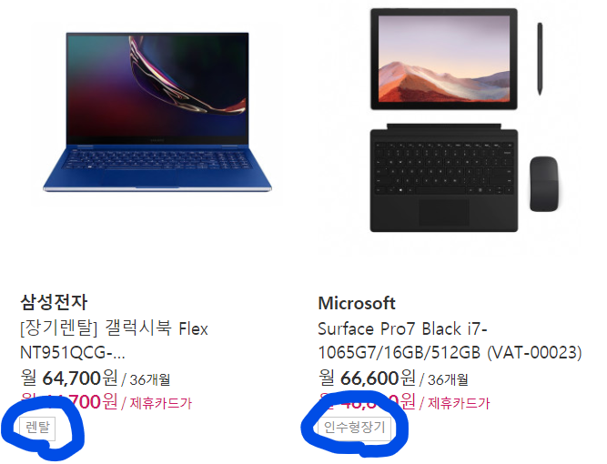 모든 상품에서 노트북 렌탈 형태를 선택할 수 있지는 않고, 보통 상품 설명 페이지에 해당되는 렌탈 방식이 기재되어 있으니 꼭 확인하셔야 합니다.