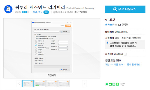 ‘짜투리 패스워드 리커버리’ 프로그램은 네이버 자료실에서 무료로 다운로드할 수 있습니다. 암호가 설정된 압축파일 형식인 ‘ZIP, 7Z, RAR’ 등의 파일이나 ‘PDF’ 파일의 암호 제거에 이용할 수 있는 프로그램입니다.