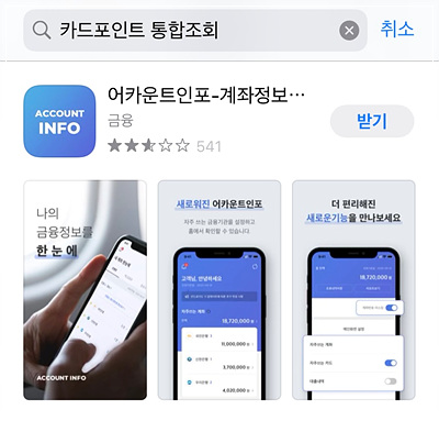 모바일에서 카드포인트를 조회하고 현금화하려면 애플리케이션을 이용하는 방법이 있습니다. 애플리케이션 마켓에서 ‘카드포인트 조회'를 다운로드 하면 됩니다. 아이폰의 경우 금융결제원의 '어카운트인포' 앱을 다운받으면 동일한 서비스를 이용할 수 있습니다.