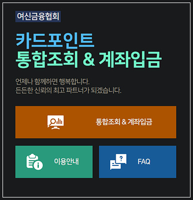 우선 PC로 포인트를 통합조회하는 방법이 있습니다. ‘카드포인트 통합조회’ 사이트를 여신금융협회에서 운영하고 있는데요. 구글에서 검색하시거나 ‘카드포인트 통합조회 바로가기’를 통해 이동하실 수 있습니다.