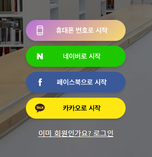 밀리의 서재는 따로 회원 정보를 입력할 필요 없이 위의 네 가지 방법으로 회원가입이 가능하네요! 평소 자주 이용하는 계정을 선택해서 가입하면 될 것 같습니다. 저는 '네이버로 시작'을 선택했는데요. 개인정보 제공에 동의하기만 하면 닉네임 등만 설정 후 바로 가입이 완료됩니다.