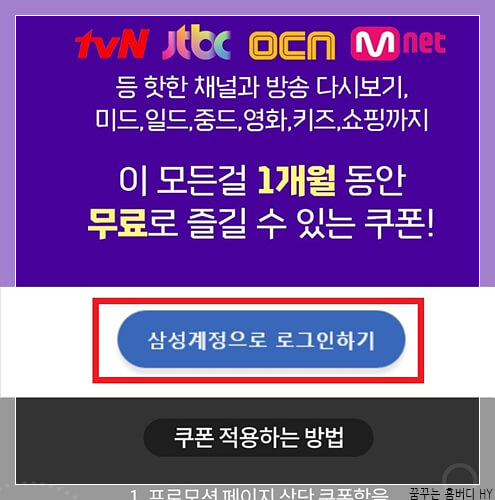티빙 한 달 무료 쿠폰 발급 및 적용